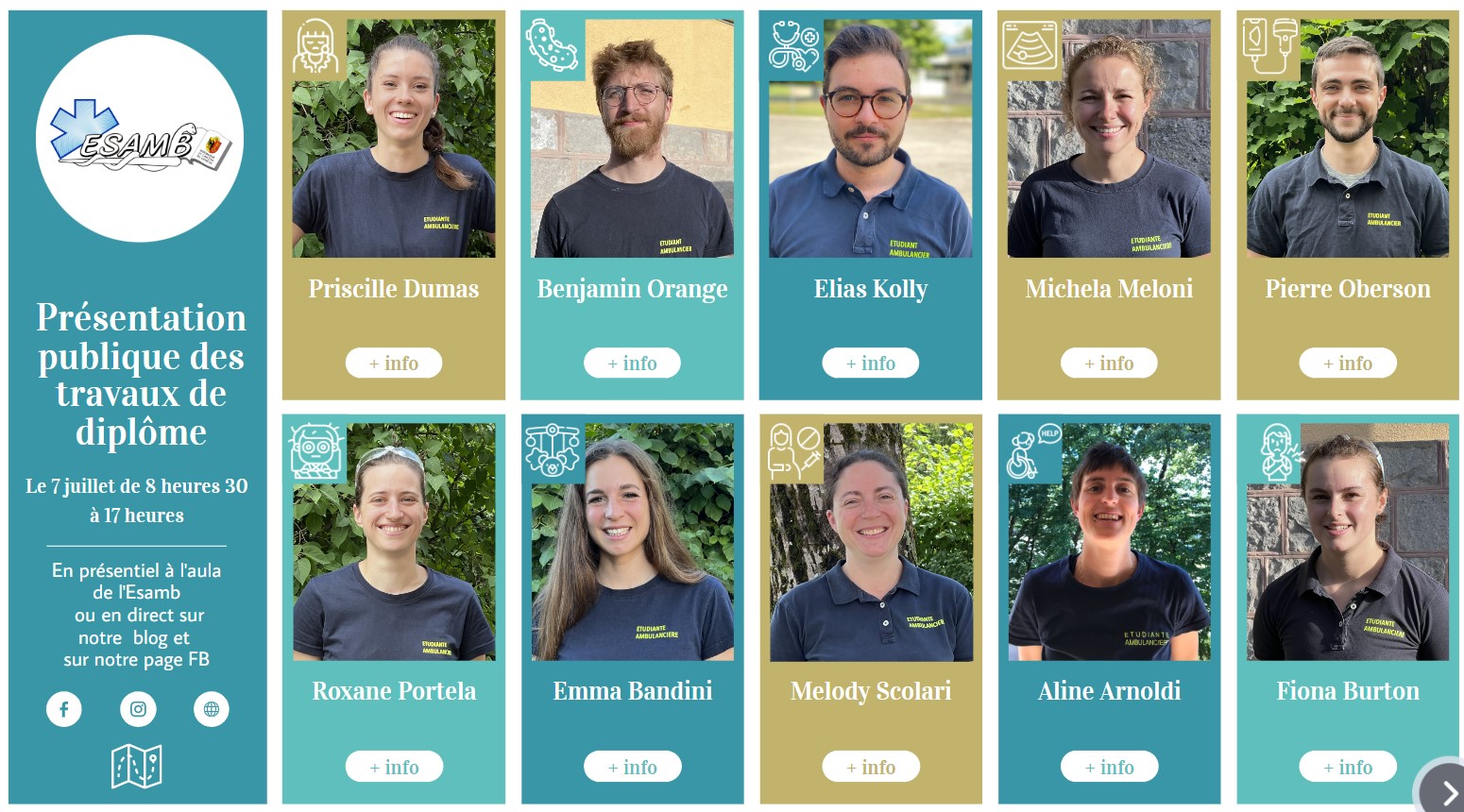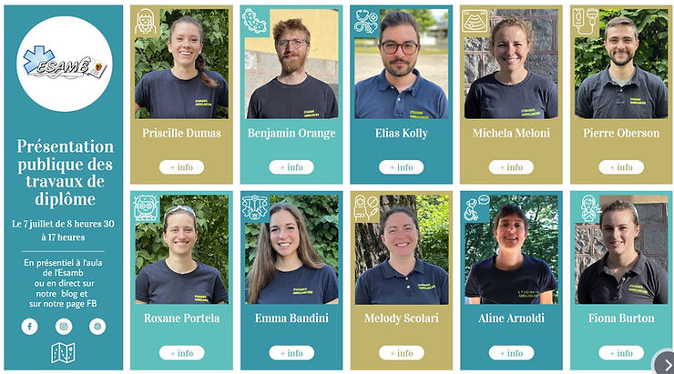 Jeudi 7 juillet 2022 s'est déroulé à Genève la présentation publique et en ligne d'une sélection des travaux de diplôme 2022 des étudiant·e·s ambulancier·ère·s ESAMB en fin de formation. Ils vous proposent de voir ou re…